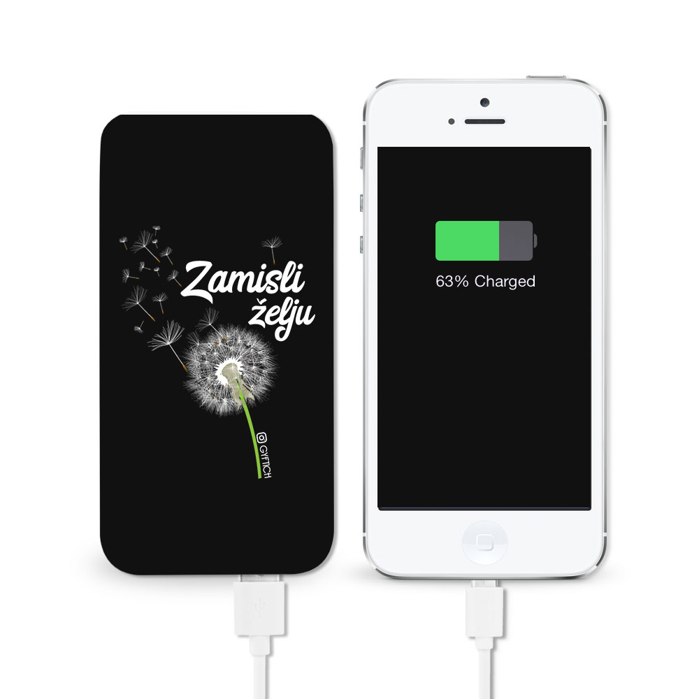 Zamisli želju je idealan print za pomoćnu bateriju. Nema šta da zamišljaš da ti telefon bude uvek pun,samo uzmeš pomoćnu bateriju i želja se ostvarila. Zato mislim da je ovo pravi natpis za ovaj poklon.